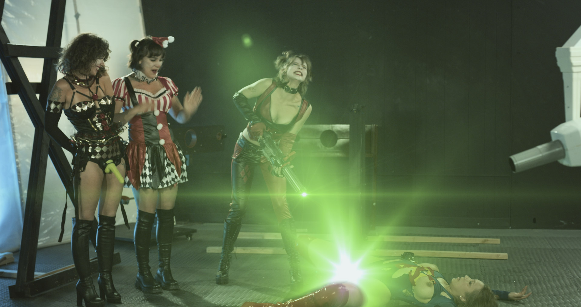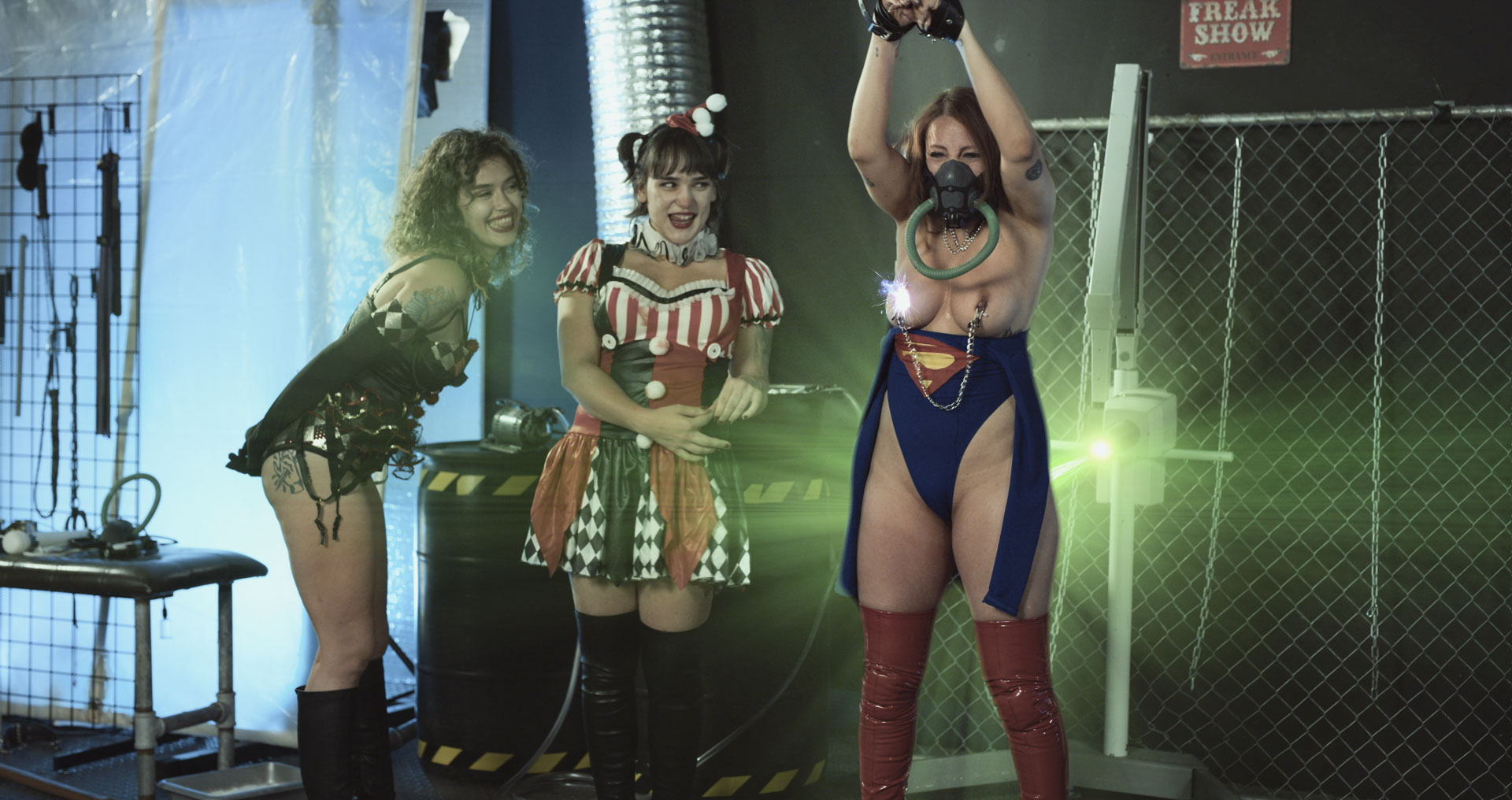 Synopsis: SG’s torture continues, and Harley has no plans of letting up. Relentlessly, Harley edges poor SG with a pleasure laser, stopping just before release, threatening to explode a bomb in the city should SG show any sign of cumming. But it’s too much. SG begs Harley for release, and Harley gleefully grants her request. To add insult to injury, Harley broadcasts SG’s humiliating moment to the media but doesn’t stop there. The pussy torture continues with a krypto weapon, and before she realizes it, poor SG is getting fucked every which way from Harley, Bambi, and Thumper.