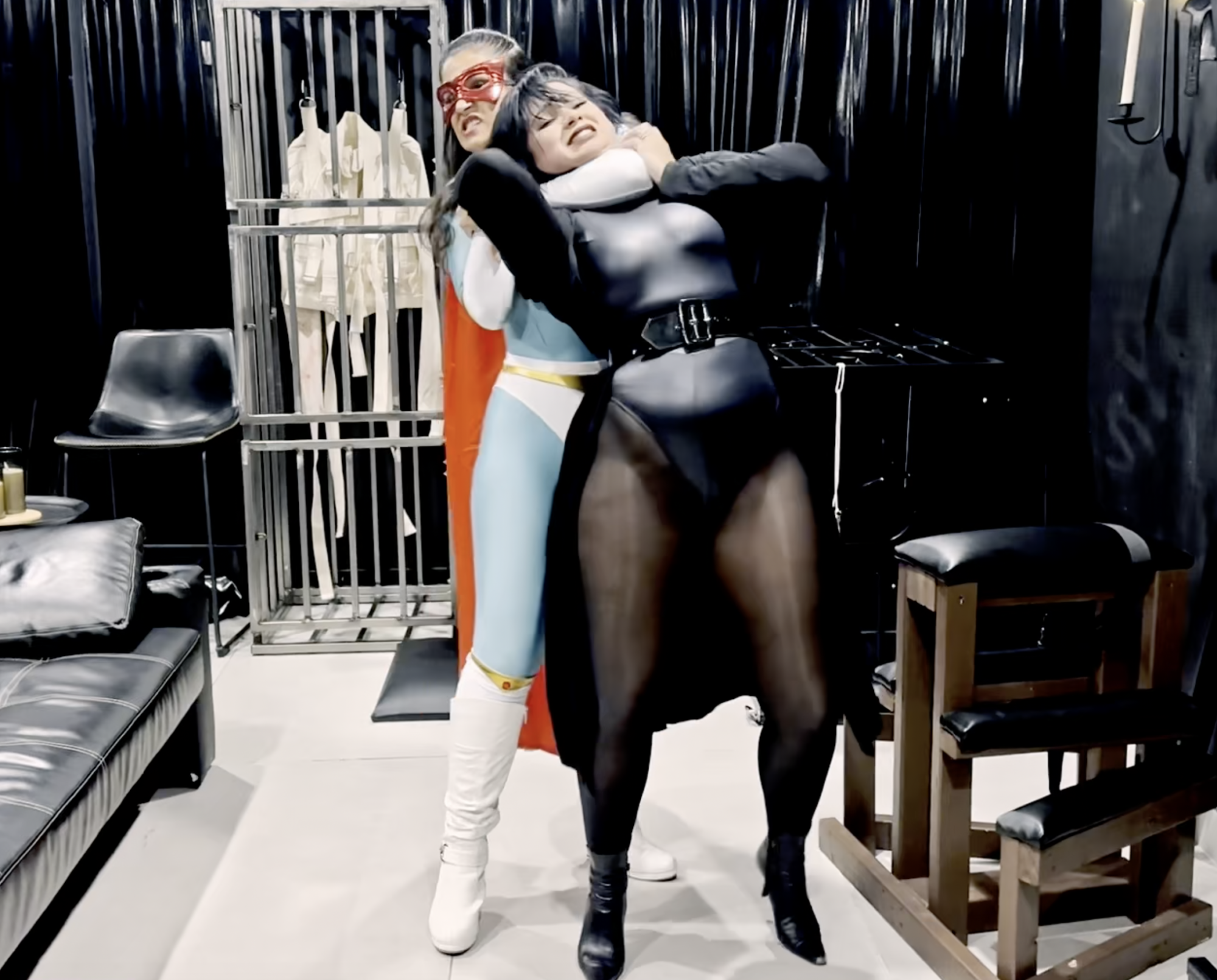 Hi everyone! We have returned to the Secret Dungeon in possibly our longest video to date with Calisa Bliss as her own original superheroine, Miss Mighty! She is battling Veda Vega played by Enchantress Sahrye!