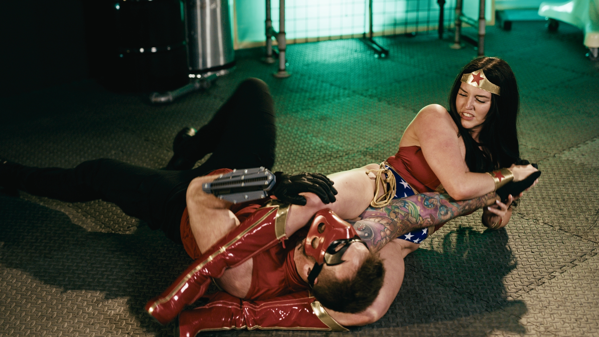 Wonder Star storms into Professor Profane’s sealed chamber expecting to confront him, only to discover he has resurrected Harvester—a vicious foe she previously defeated and left for dead… or so she thought. This new version regenerates instantly and grows stronger with every blow he lands. Profane has also rigged the chamber with a sadistic energy system that absorbs the force of their fight and redirects it as a laser straight into her pussy. Every brutal kick, punch, and laser strike becomes a punishing assault of pain and intense, unwanted pleasure that slowly erodes her strength.